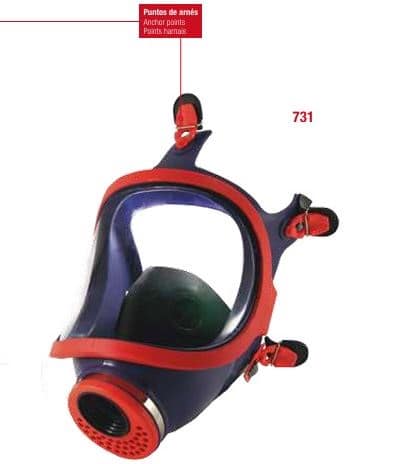 Climax Full Face Mask Model 731, manufactured in Spain, offers comprehensive protection for the face, eyes, and respiratory system. Designed for use in contaminated atmospheres, this reusable mask features a wide, anti-scratch panoramic visor for an unobstructed view and a comfortable, airtight seal. With its standard EN 148-1 thread connection, it is compatible with a wide range of standard gas, particle, and combined filters, making it a versatile and reliable choice for general industrial and professional use.