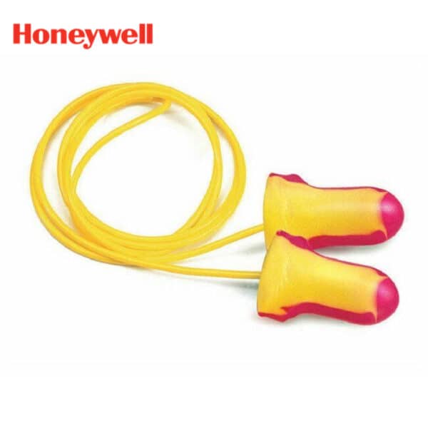 LL-30 Corded Earplugs by Honeywell are corded, disposable foam earplugs known for their high visibility with vibrant magenta and yellow colors, making compliance checks easy.