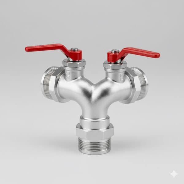 - Dual Outlet Control: Features one main inlet and two separate outlets, each typically equipped with its own independent valve (like the red lever valves shown) for precise control over water flow to each connected hose.